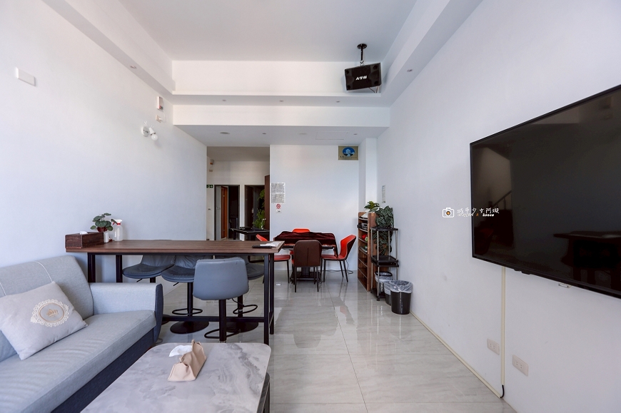 進入客廳,民宿老闆已貼心將冷氣開好,好涼好涼~乾淨明亮又寬敞,美好的第一印象。包棟必備的電動麻將桌跟歡唱KTV通通都在客廳區。
