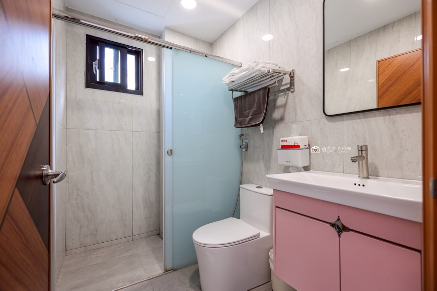 廁所簡簡單單,有乾濕分離,空間剛剛好,衛浴乾淨就給過~
